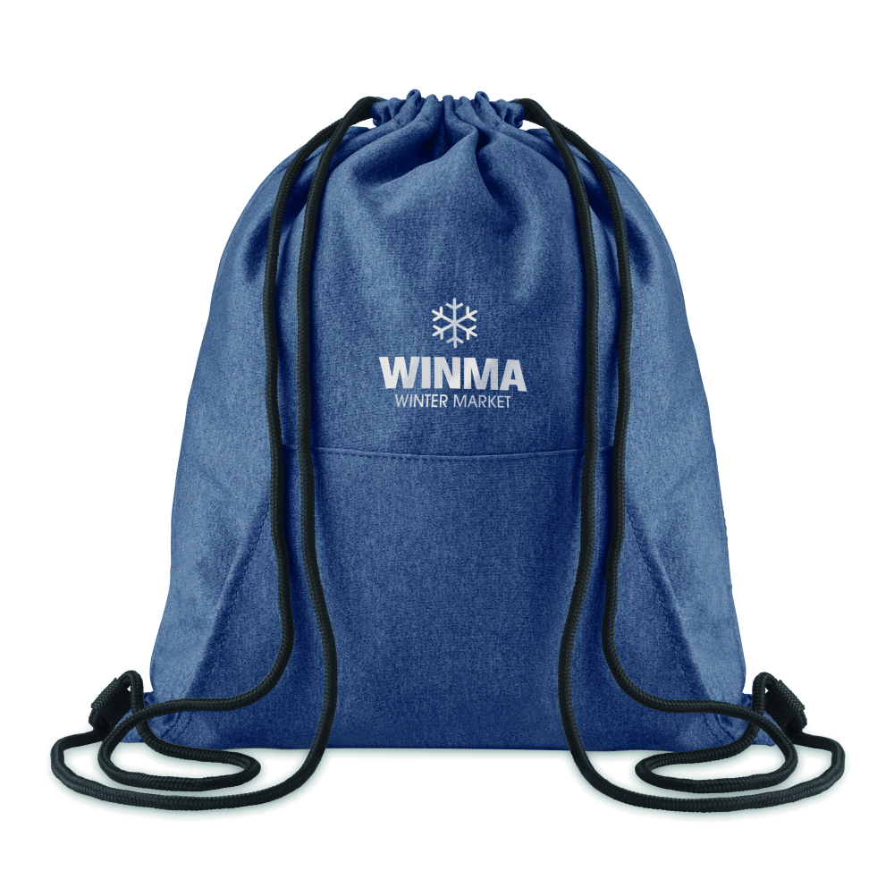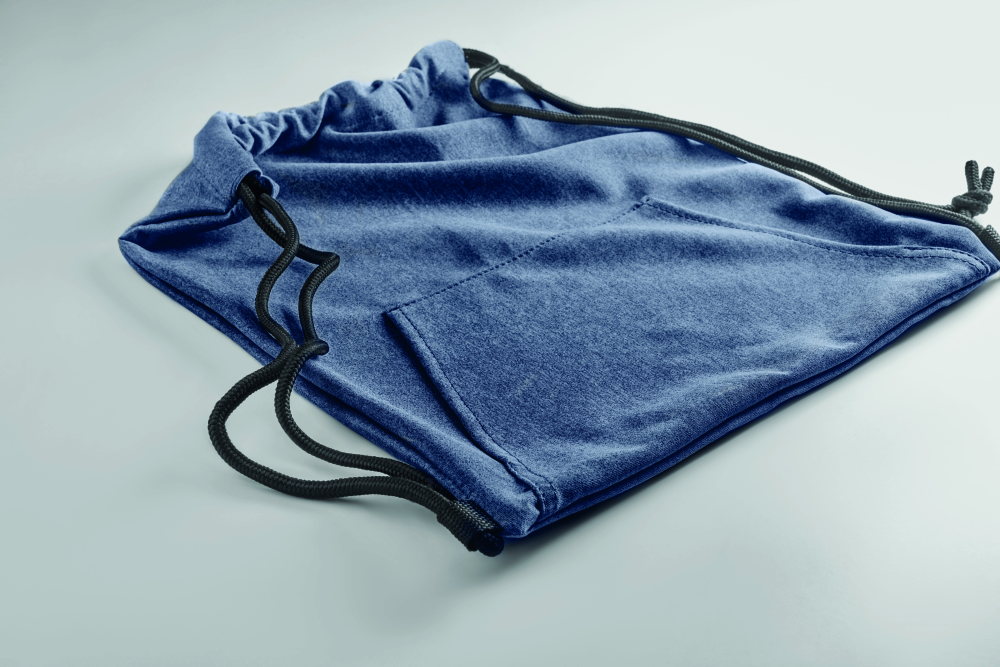 Plecak ze sznurkiem z dwukolorowej tkaniny z przednią kieszenią.