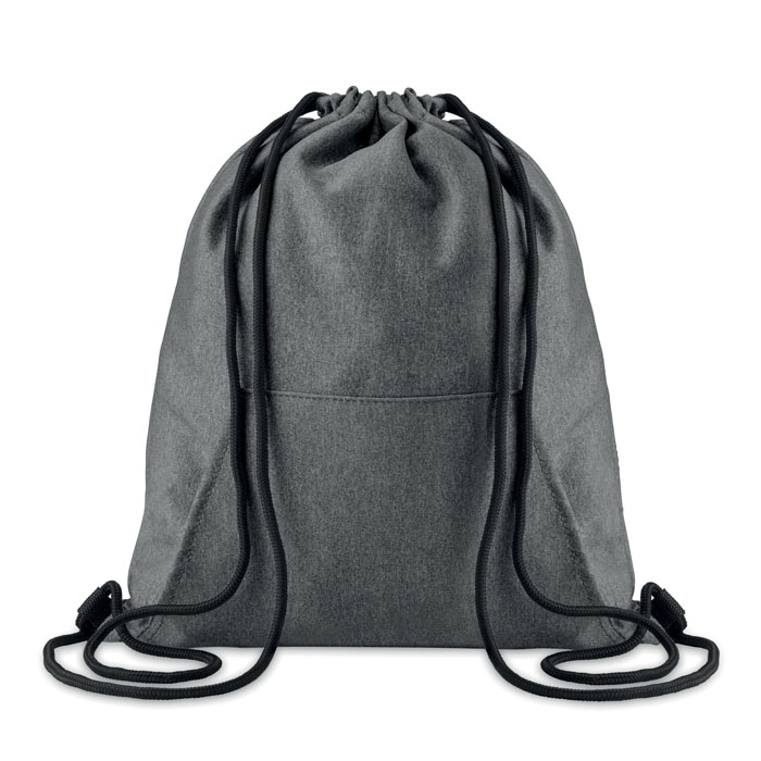 Plecak ze sznurkiem z dwukolorowej tkaniny z przednią kieszenią.