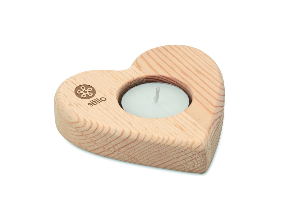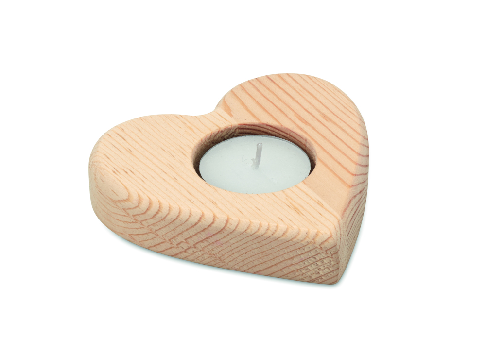 Drewniany świecznik serce. W zestawie świeczka tea light. Do użytku tylko ze świeczką tea light.