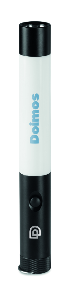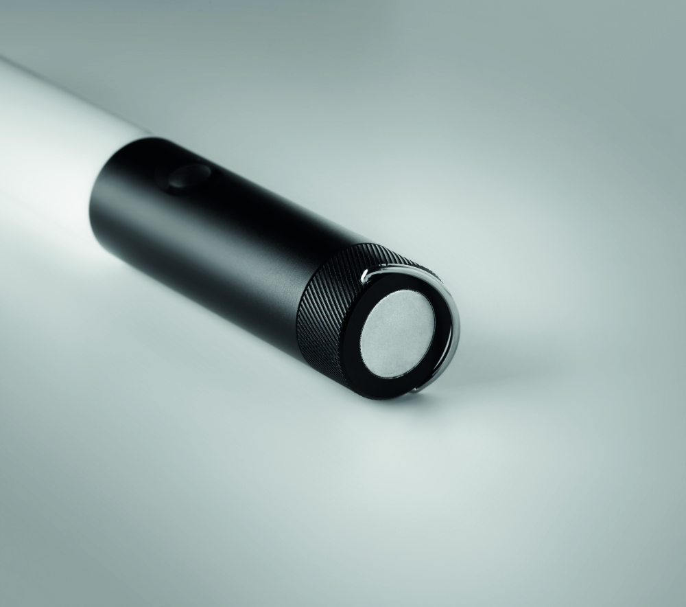 Latarka 1 LED lub lampka do czytania, z aluminium i ABS po bokach. Na górze magnes i uchwyt. 3 baterie AAA nie są dołączone.