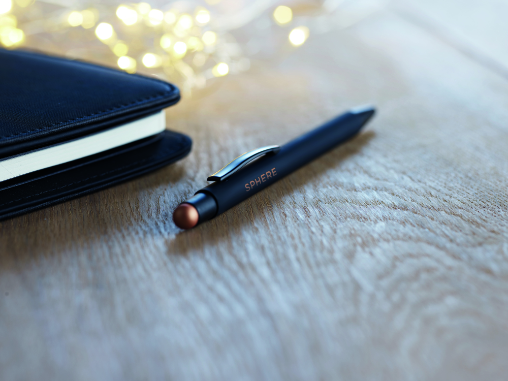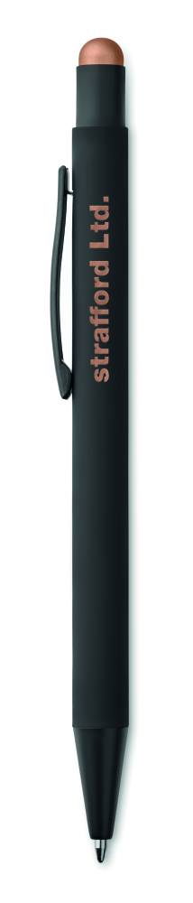 Długopis z rysikiem wykonany został z matowego, złoconego aluminium, co stanowi kwintesencję funkcjonalności połączonej z nowoczesnym designem. Idealnie wyważony i elegancko wykończony. Na końcu długopisu znajduje się rysik, który pozwala na łatwe i precyzyjne obsługiwanie urządzeń z ekranami dotykowymi. Aluminium zapewnia chłodny, gładki dotyk, a matowe wykończenie zwiększa przyczepność i komfort trzymania. Lekkość materiału (tylko 20 gramów) sprawia, że długopis jest idealnie wyważony w dłoni, co przekłada się na komfort podczas pisania.