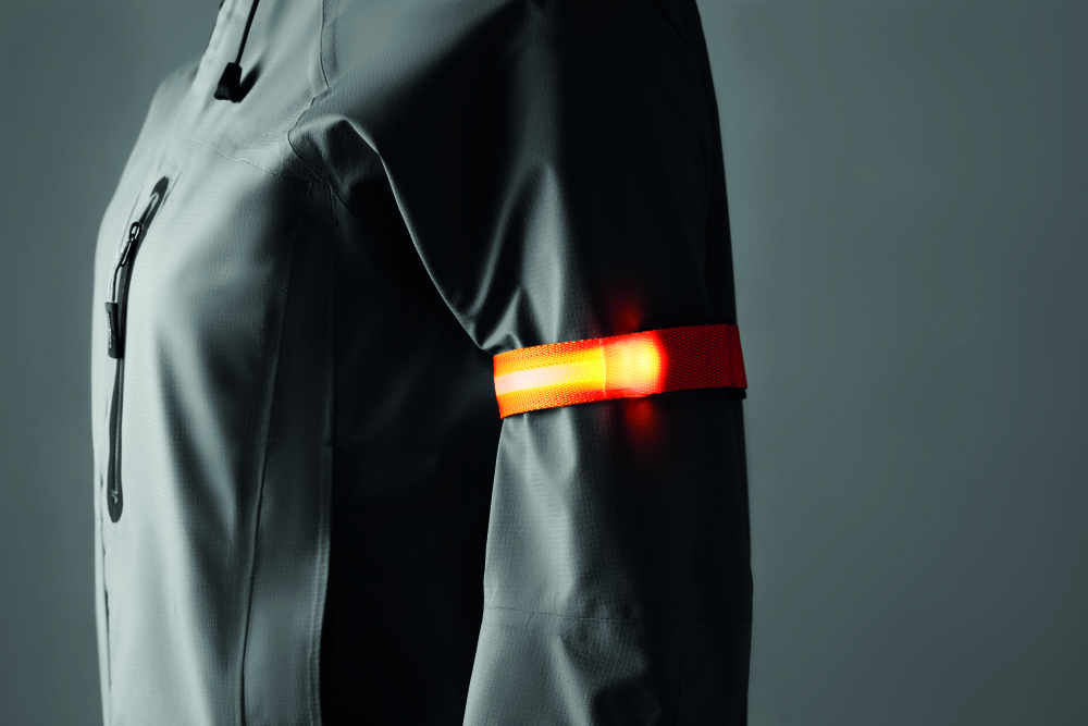 Świecąca opaska 3 trybami świecenia. Zawiera 2 baterie CR2032.