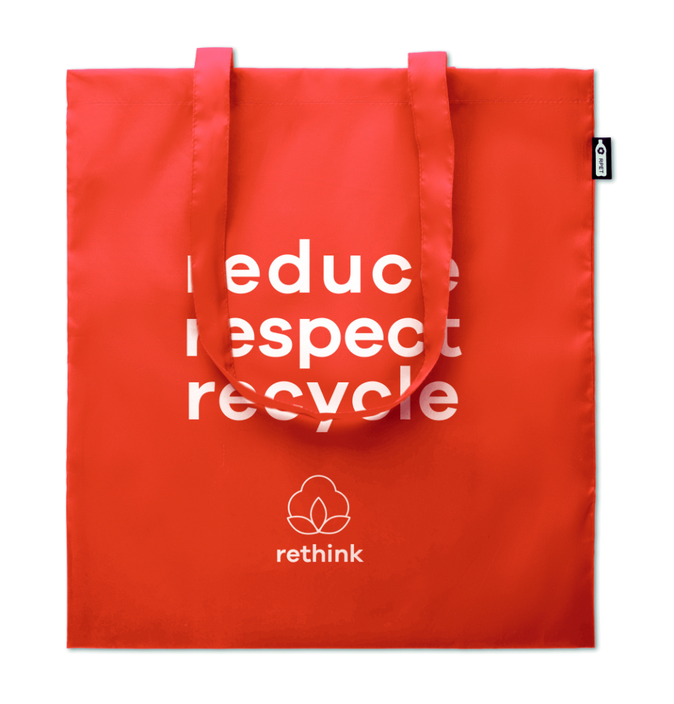 Torba na zakupy z RPET 190T z długimi uchwytami, 100 gr / m². Ekologiczny materiał wykonany z przetworzonych plastikowych butelek.