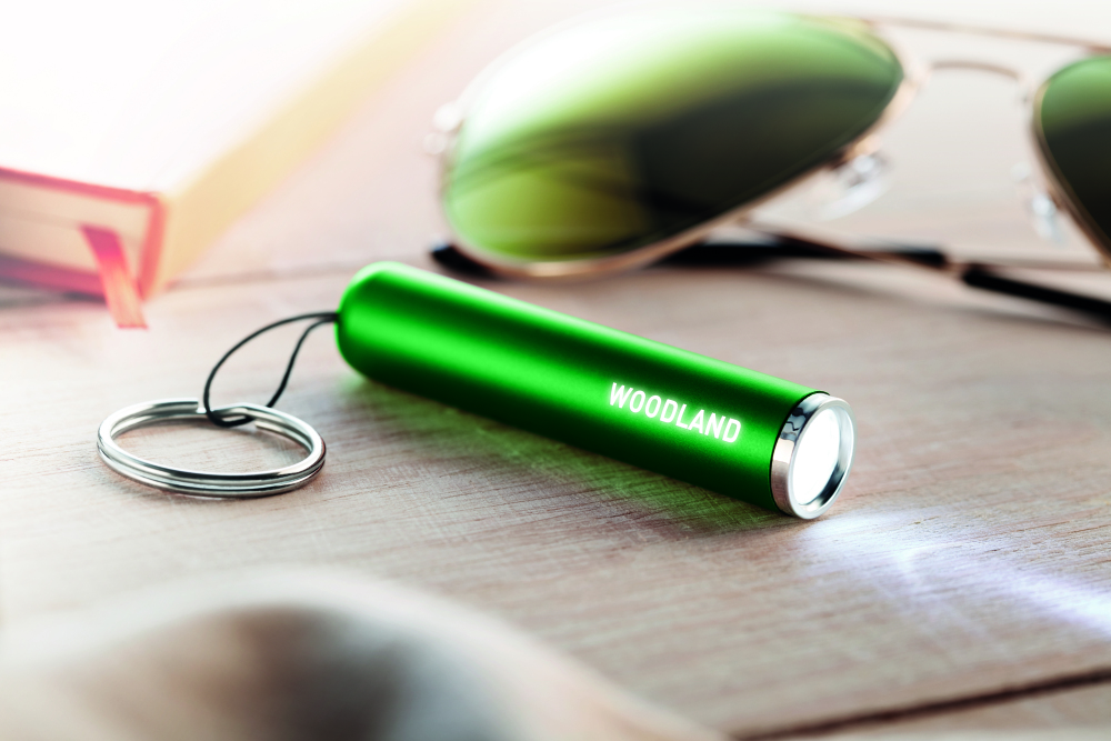 Latarka LED z ABS z brelokiem. Posiada uchwyt na klucze. W zestawie 3 baterie AG3. Korpus zawiera lampkę do podświetlenia wygrawerowanego logo.