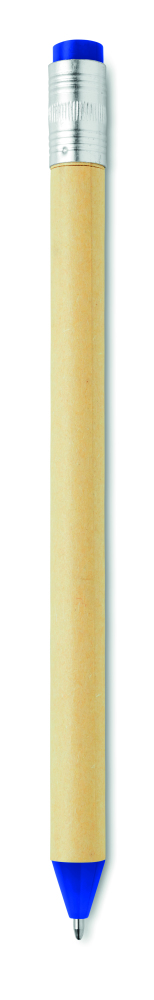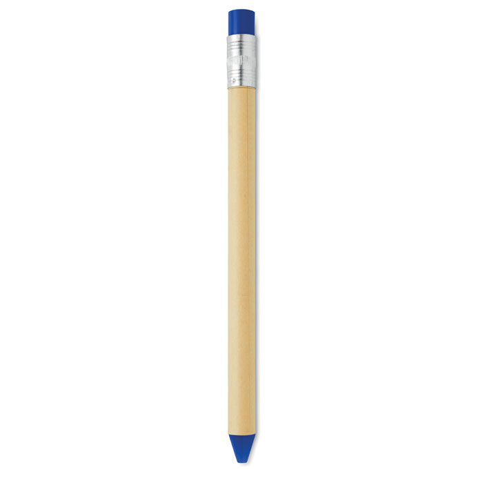 Pióro kulkowe w kształcie ołówka, z kartonowym korpusem. Niebieski wkład.