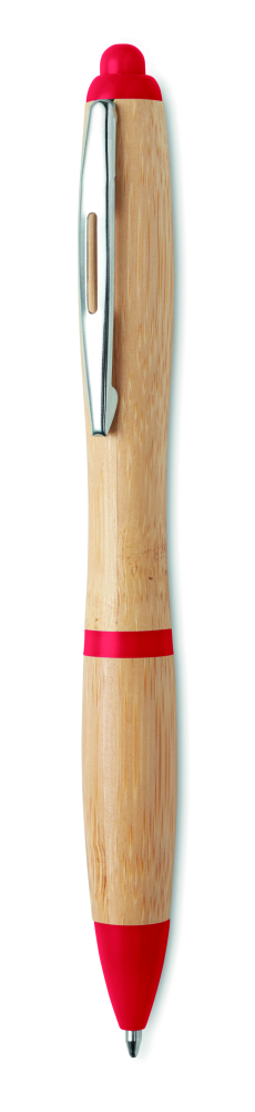 Wciskany długopis z korpusem z bambusa oraz elementami z ABS. Niebieski tusz.