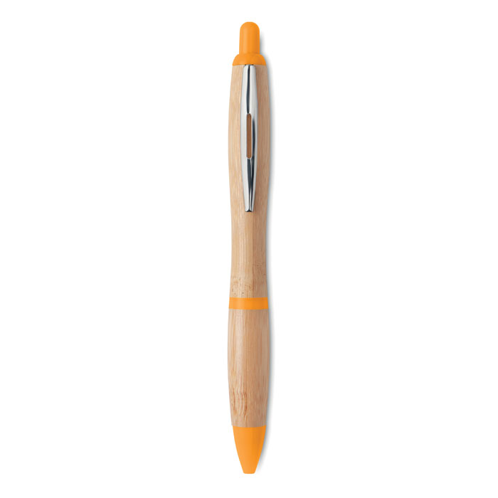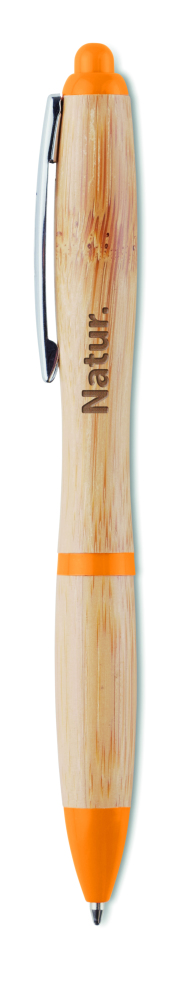 Wciskany długopis z korpusem z bambusa oraz elementami z ABS. Niebieski tusz.