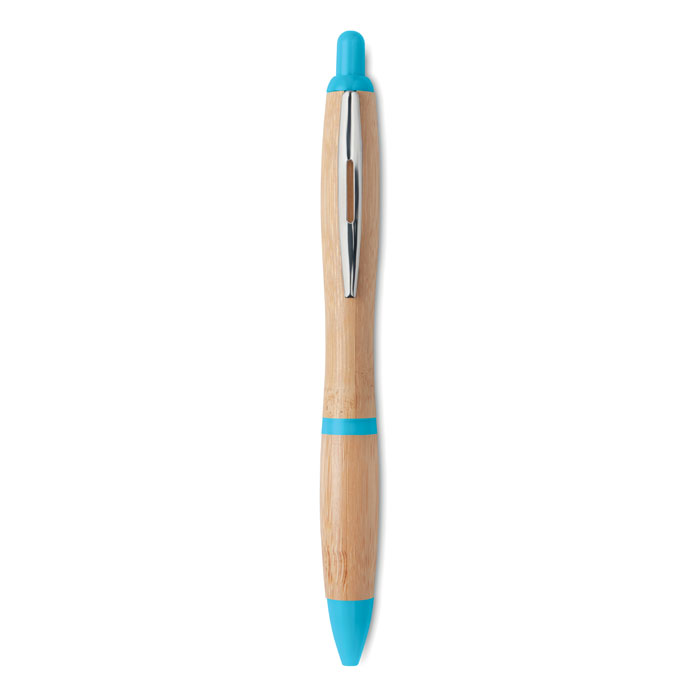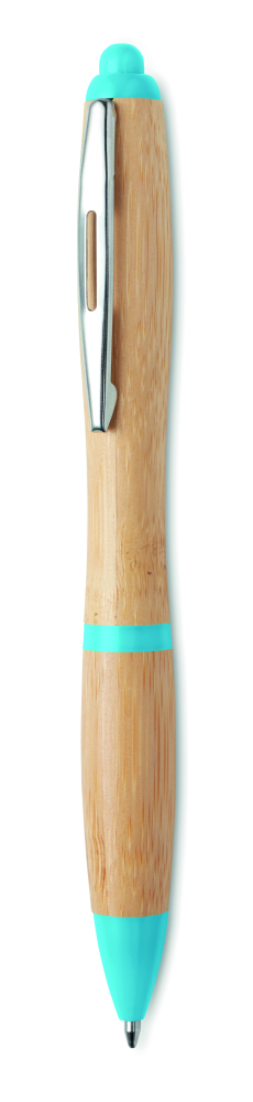 Wciskany długopis z korpusem z bambusa oraz elementami z ABS. Niebieski tusz.