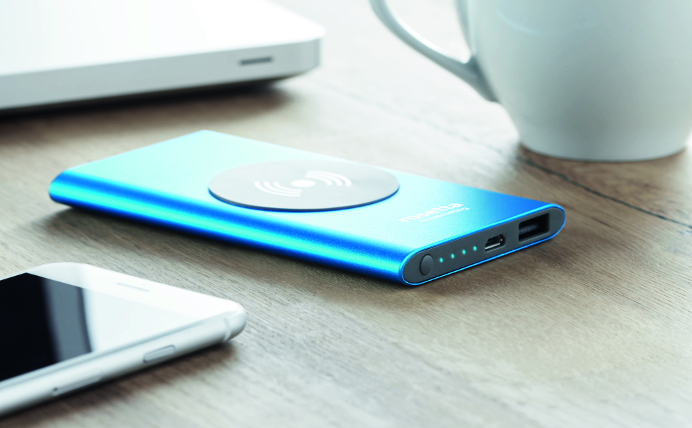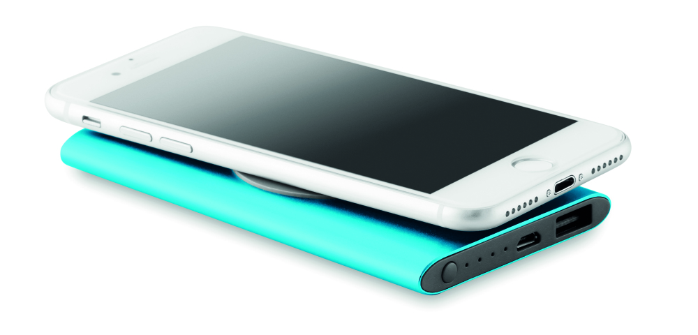 Bezprzewodowy powerbank 4000 mAh z aluminium. Zawiera złącze typu C. Wyjście: DC5V / 1.0A. Zgodny najnowszym systemem Androidy, iPhone® 8, 8S i X i nowszymi.