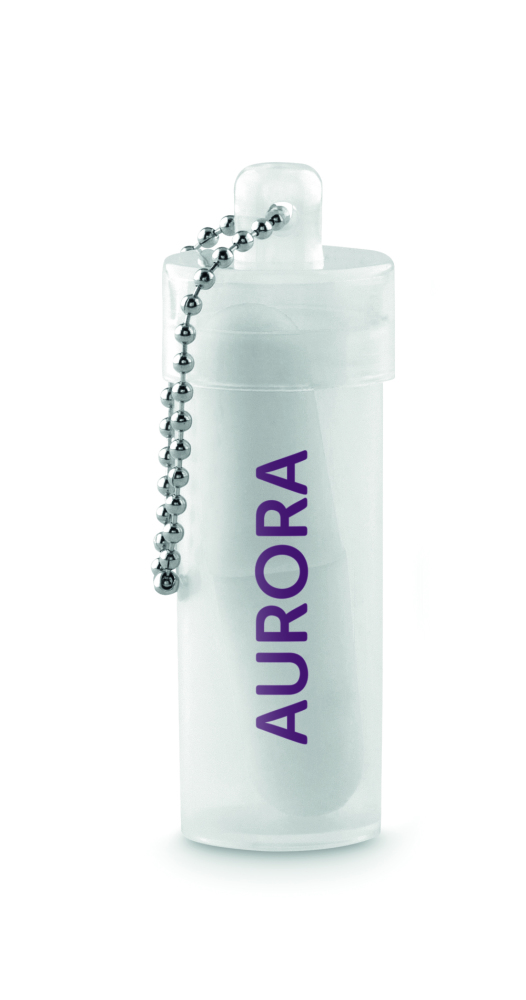 Zatyczki do uszu w plastikowej tubie.