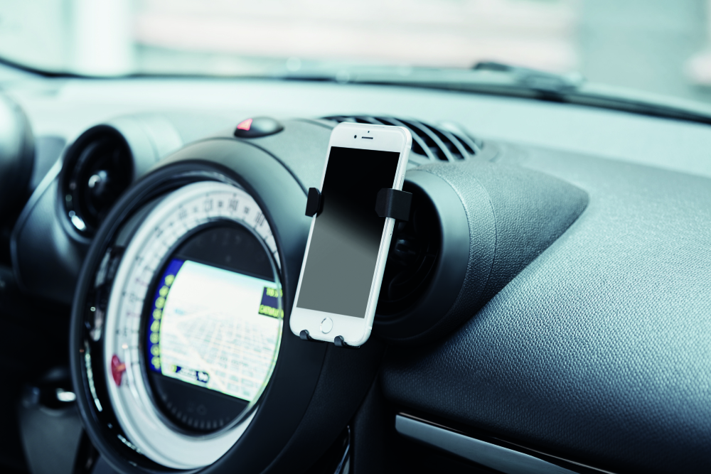 Uniwersalny samochodowy uchwyt na telefon z aluminiowymi detalami. Możliwość dostosowania do różnych rozmiarów telefonów komórkowych.