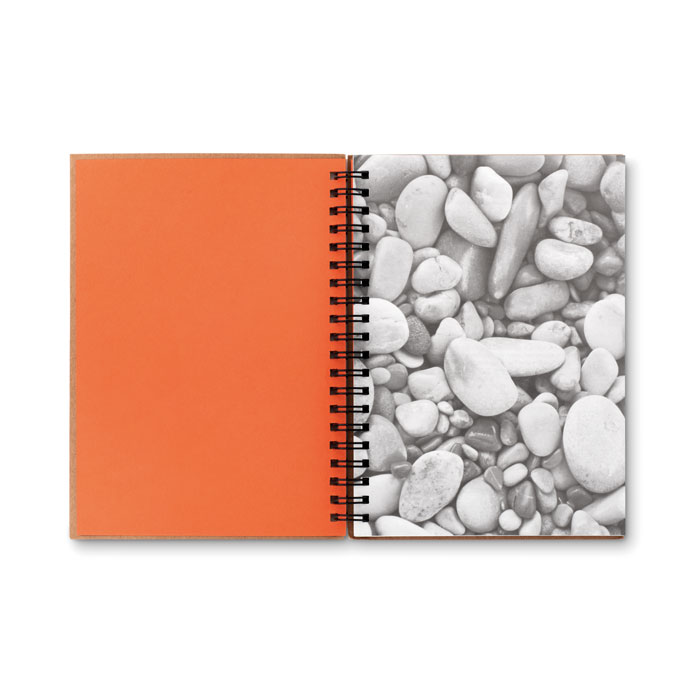 Notatnik na spirali, 70 kartek z papieru z kamienia i okładka z recyklingu. Papier wykonany jest z węglanu wapnia, wapienia i tworzywa HDPE, jest wyjątkowo odporny i ulega szybkiej biodegradacji.