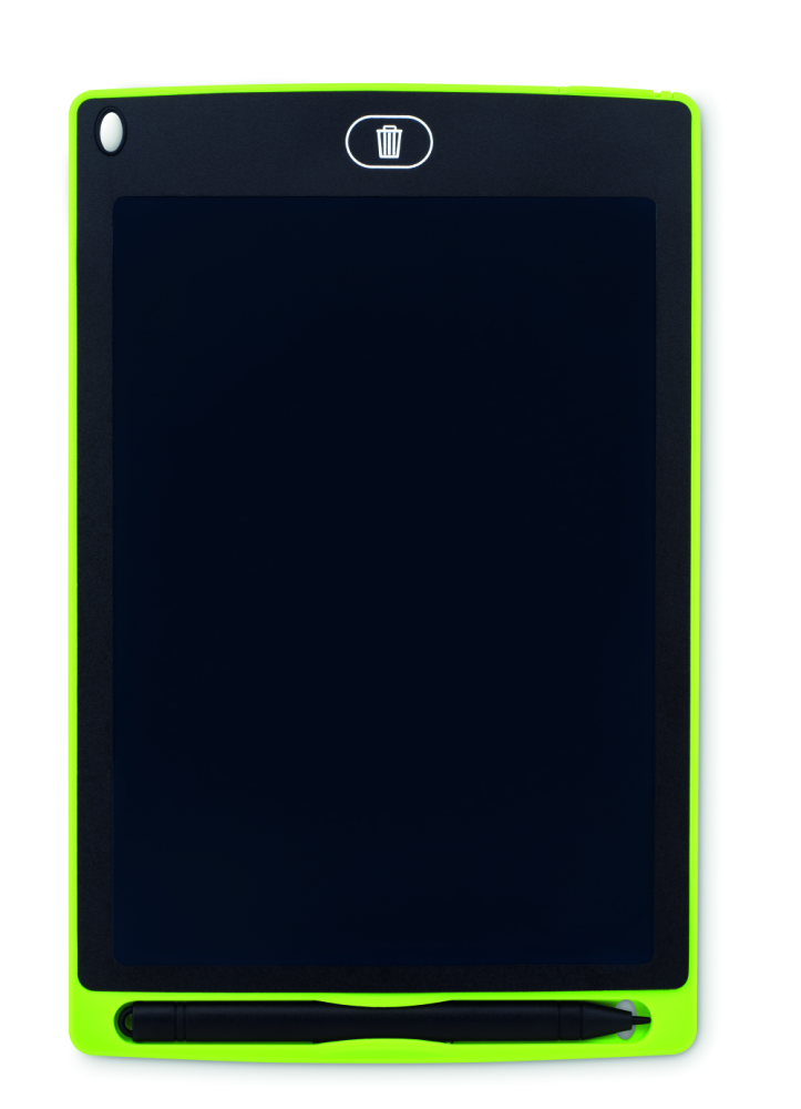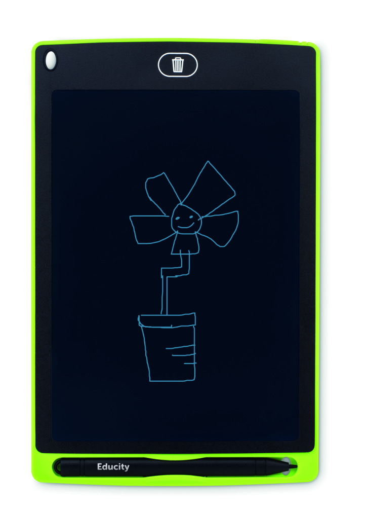 Tablet z ekranem LCD 8,5 cala z rysikiem. Dotknięcie przycisku umożliwia skasowanie rysunku. Cienki kształt ułatwia użytkowanie.1 bateria CR2020 w zestawie.