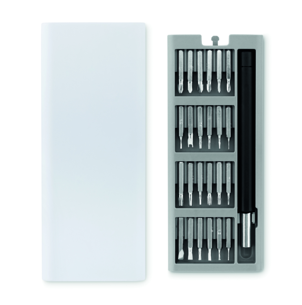 24-częściowy zestaw śrubokrętów pozwoli Ci precyzyjnie naprawić małe elementy.