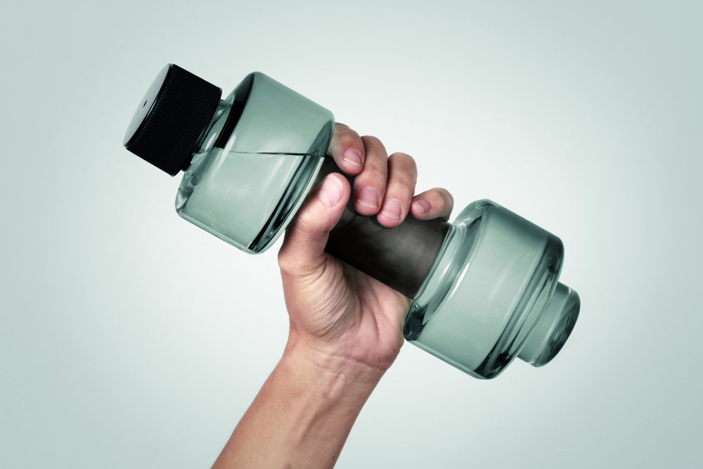 Hantle/butelka wody w kształcie ciężarków z PET. Pojemność: 500 ml.