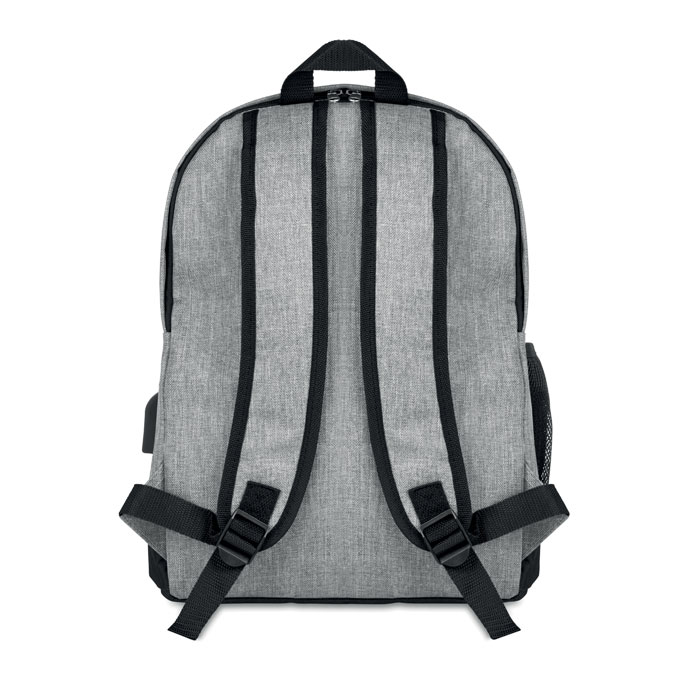 Dwutonowy wyściełany plecak z poliestru 600D. Wyposażony w wewnętrzną przegrodę z ochroną RFID oraz kieszeń na telefon. Kieszeń z siatki na butelkę lub parasol. Główna przegroda zamykana na zamek umieszczony z tyłu dla lepszej ochrony.