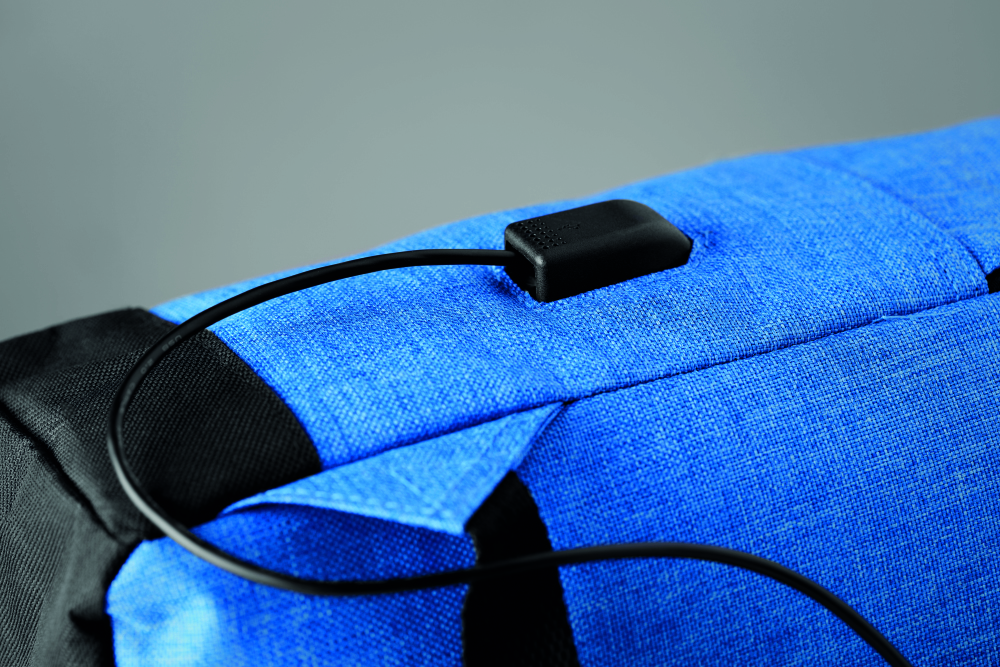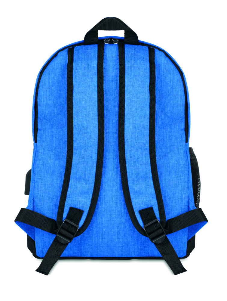 Dwutonowy wyściełany plecak z poliestru 600D. Wyposażony w wewnętrzną przegrodę z ochroną RFID oraz kieszeń na telefon. Kieszeń z siatki na butelkę lub parasol. Główna przegroda zamykana na zamek umieszczony z tyłu dla lepszej ochrony.