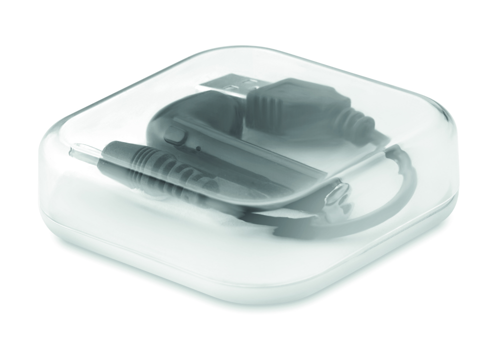 Pojedyncza słuchawka Bluetooth 4.2 z wbudowanym akumulatorem 35 mAh. W zestawie kabel do ładowania micro USB. Zapakowana w pudełko z PS.
