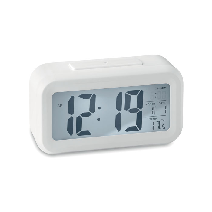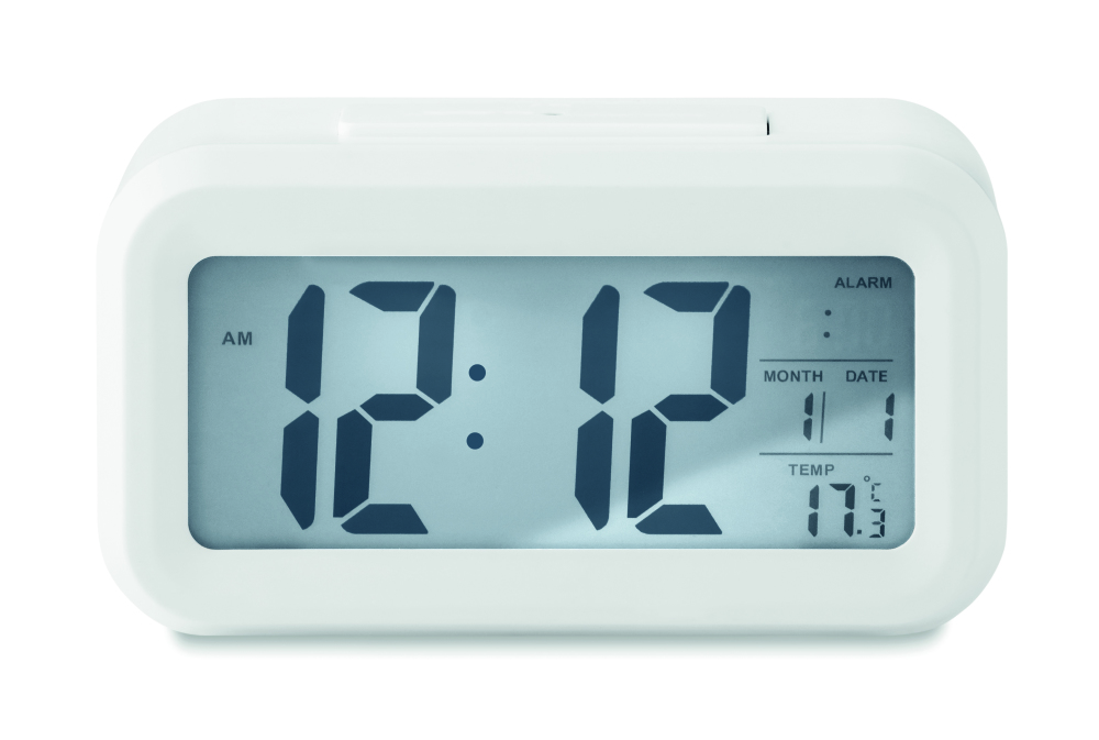 Stacja pogodowa z budzikiem i czujnikiem światła. Wyświetla czas, datę, godzinę budzika i temperaturę. 3 baterie AAA nie są dołączone.