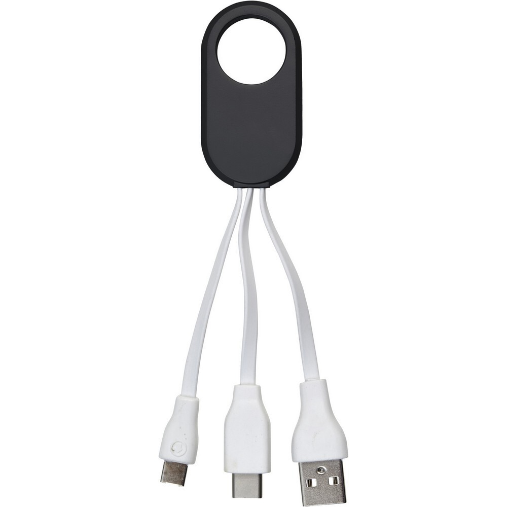 Zestaw kabli do ładowania z trzema końcówkami: USB typu C oraz 2 x micro USB, z karabińczykiem