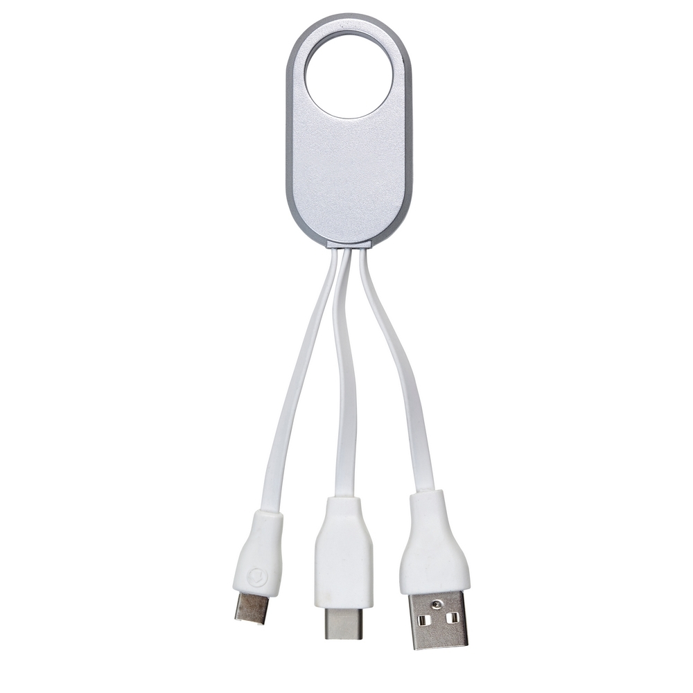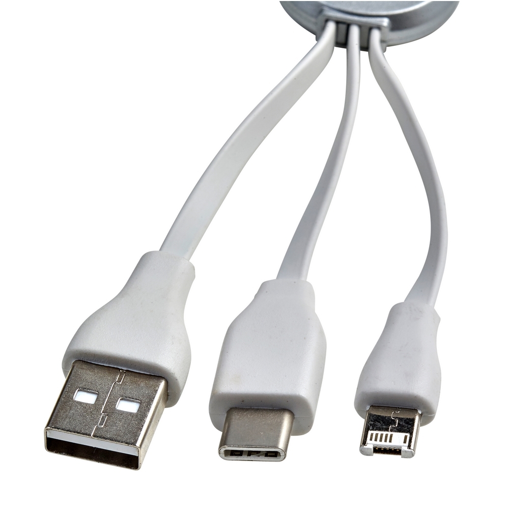 Zestaw kabli do ładowania z trzema końcówkami: USB typu C oraz 2 x micro USB, z karabińczykiem