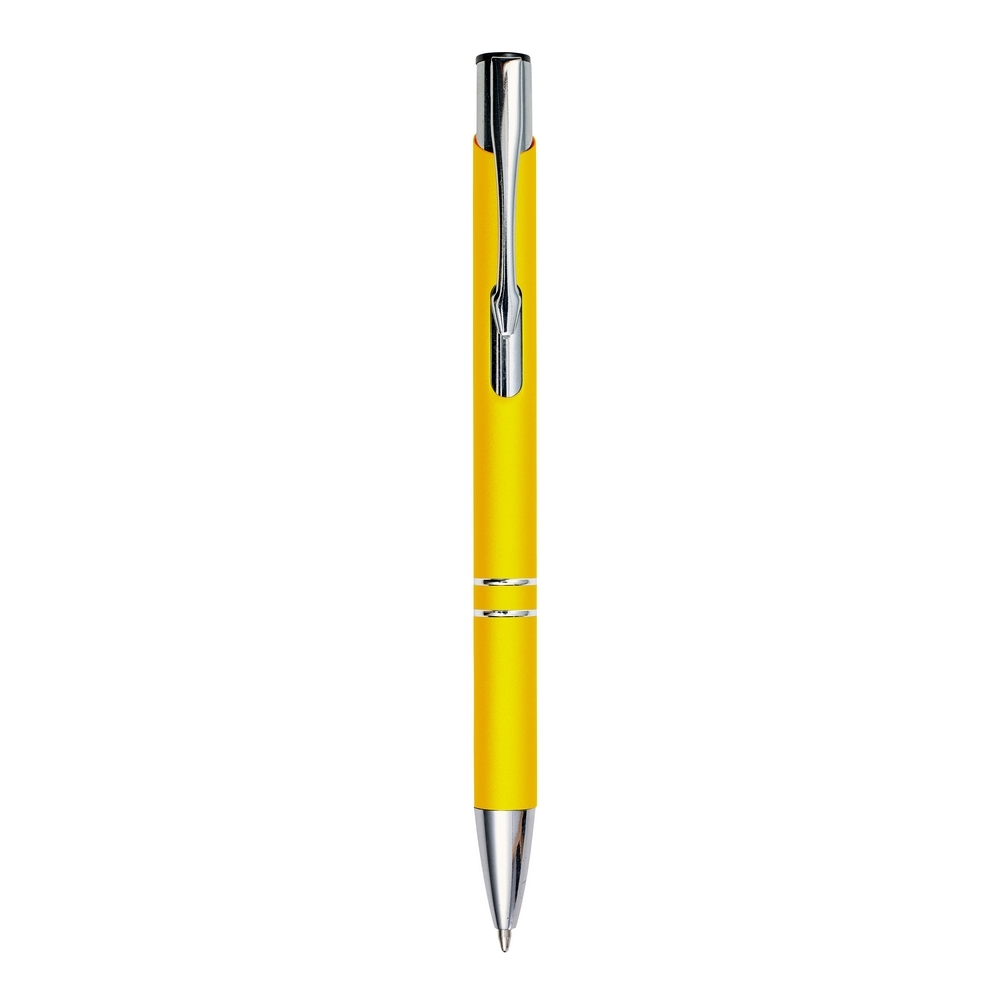 Długopis z gumowanym wykończeniem i srebrnymi elementami, grawer ukazuje lustrzaną powierzchnię