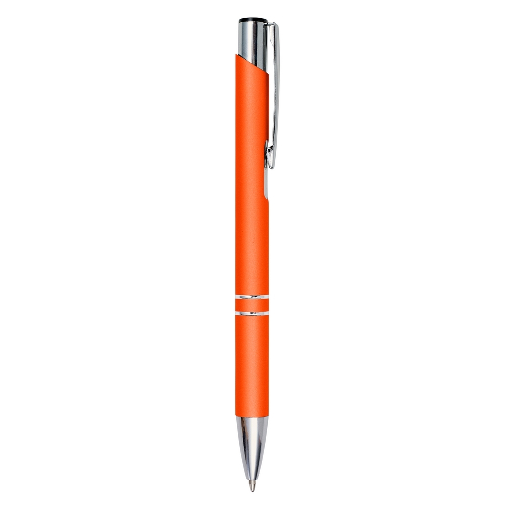 Długopis z gumowanym wykończeniem i srebrnymi elementami, grawer ukazuje lustrzaną powierzchnię