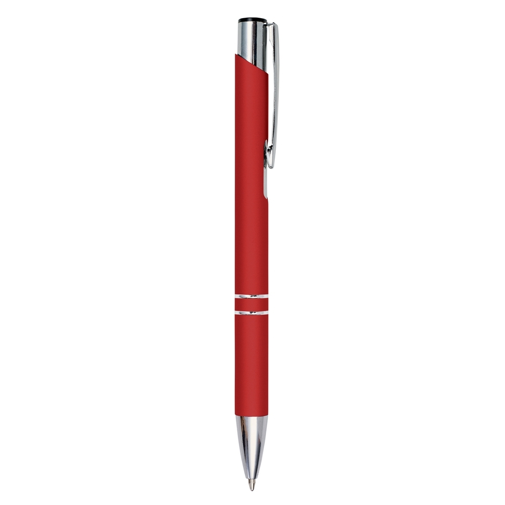 Długopis z gumowanym wykończeniem i srebrnymi elementami, grawer ukazuje lustrzaną powierzchnię