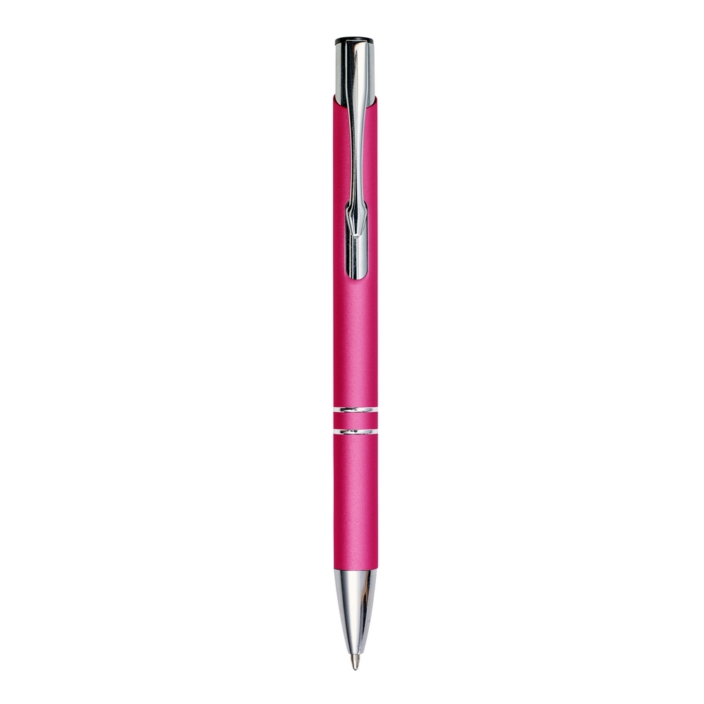 Długopis z gumowanym wykończeniem i srebrnymi elementami, grawer ukazuje lustrzaną powierzchnię