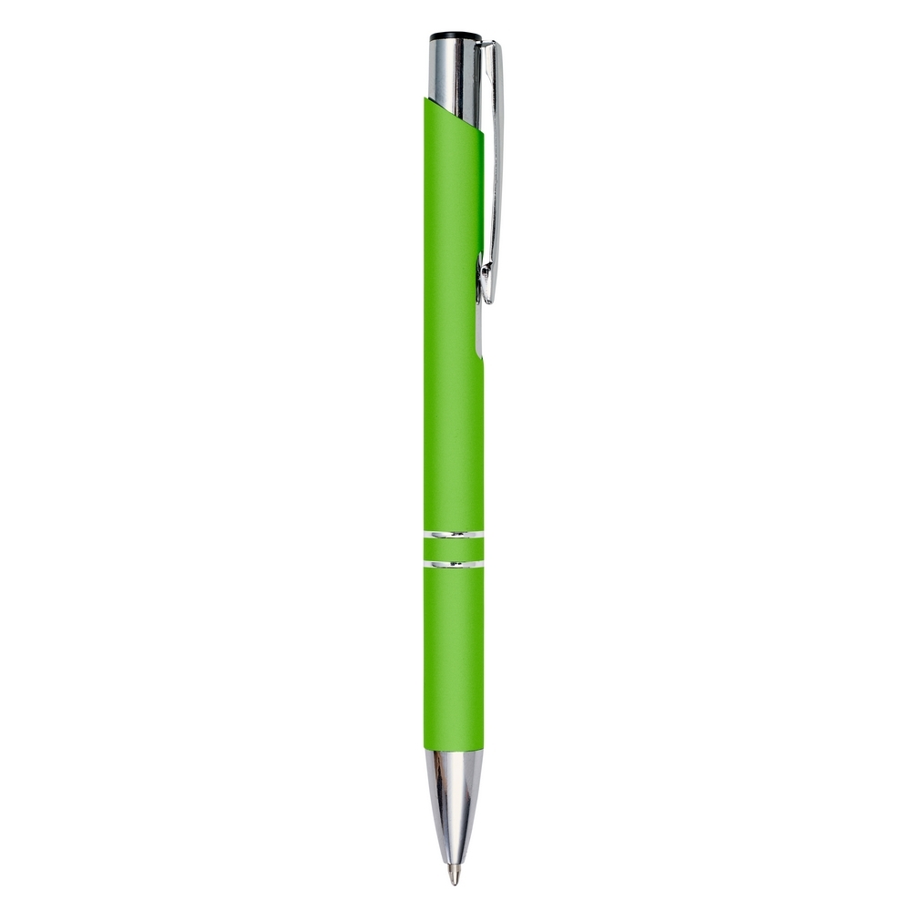 Długopis z gumowanym wykończeniem i srebrnymi elementami, grawer ukazuje lustrzaną powierzchnię