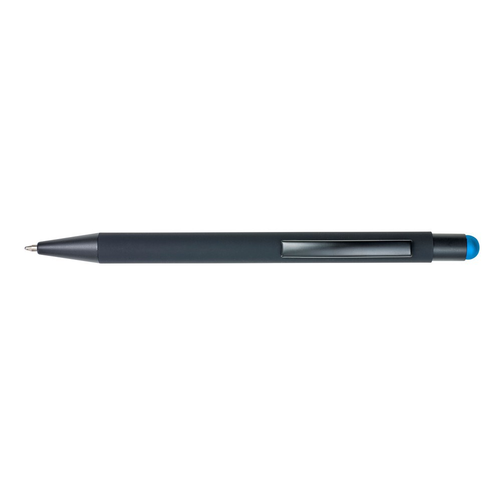Długopis, touch pen z gumowanym wykończeniem, grawer ukazuje powierzchnię w kolorze gumowej końcówki