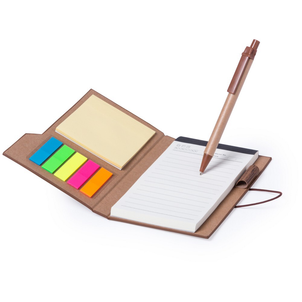 Zestaw do notatek, notatnik ok. A6, karteczki samoprzylepne, długopis / Brązowy