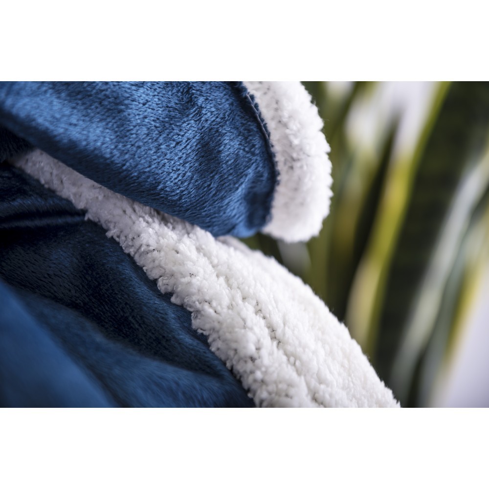 Zewnętrzna część koca jest wykonana z miękkiego polaru typu colar, natomiast druga strona z materiału sherpa o gramaturze 380g/m2.