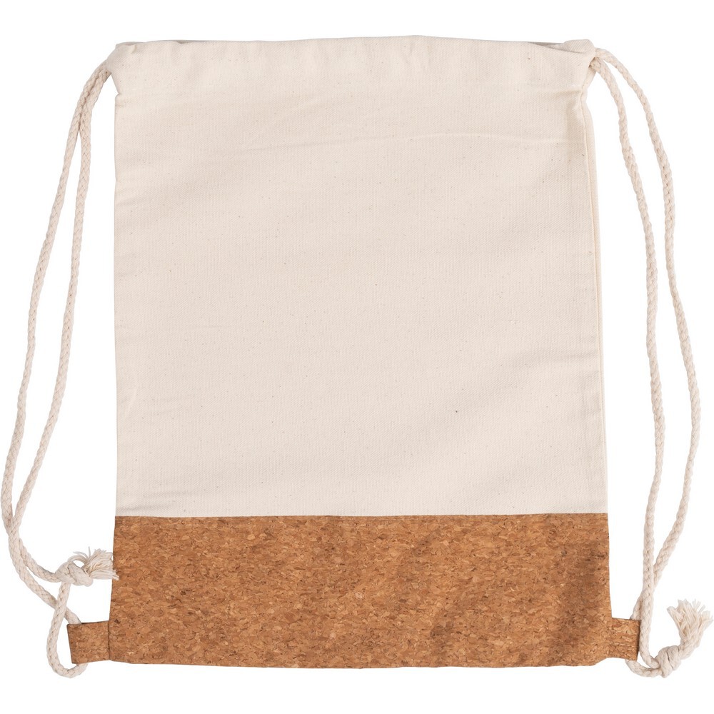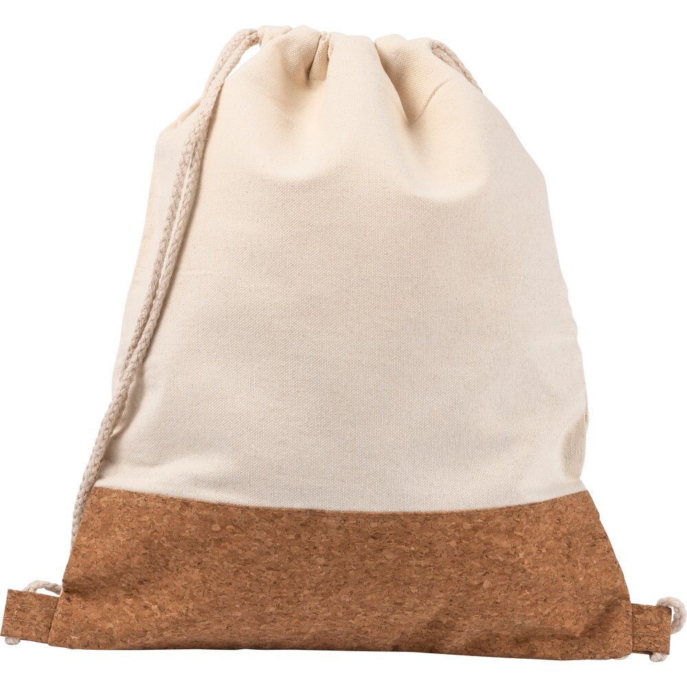 Bawełniany worek ze sznurkiem z korkowym elementem / Beżowy