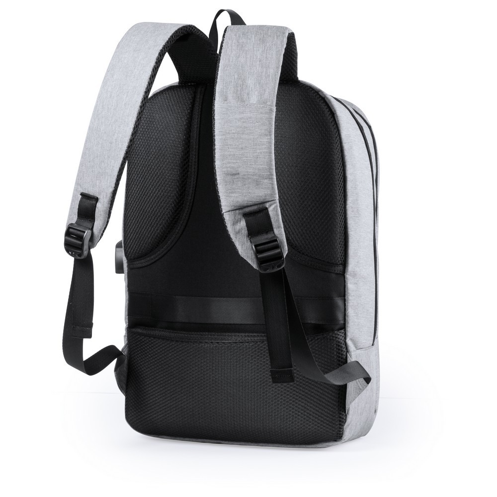 Wodoodporny plecak z miękką przegrodą na laptopa 15", gniazdo USB do ładowania telefonów (power-bank nie dołączony), miękki tył i paski na ramię, zamek szyfrowy w komplecie