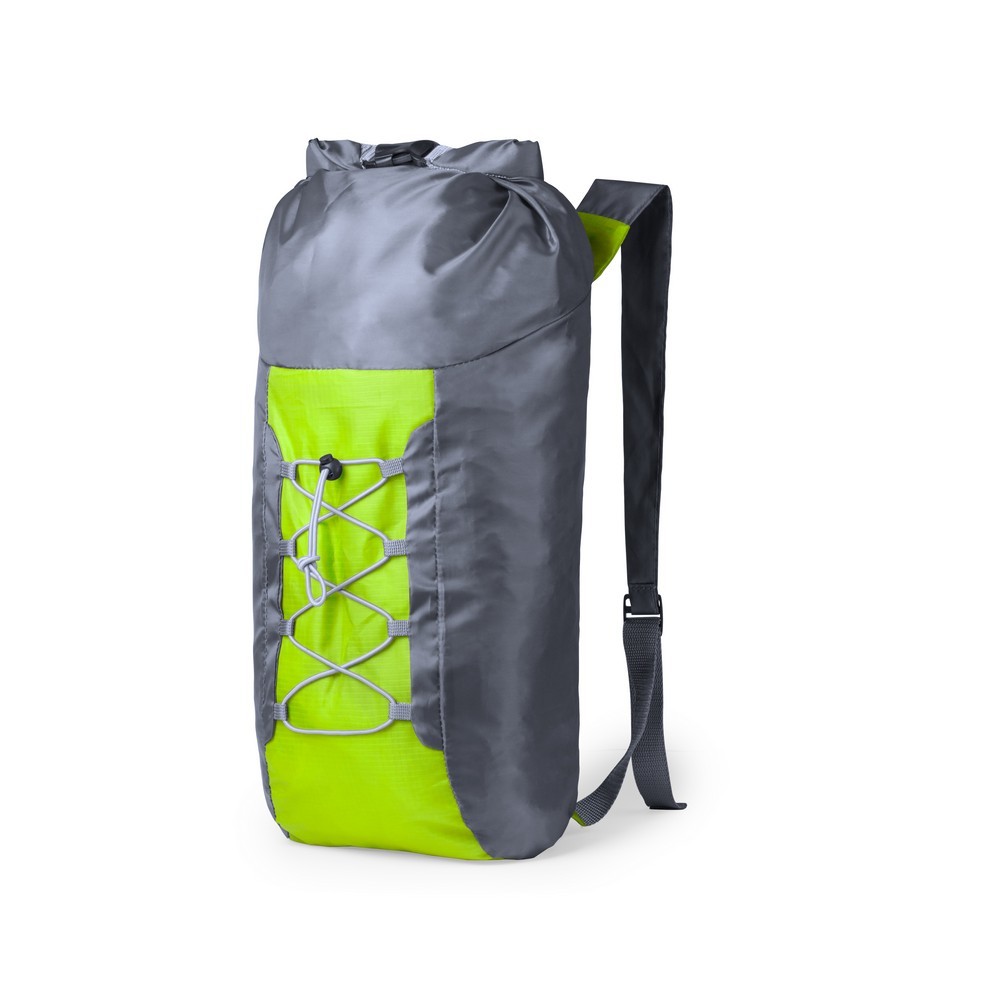 Składany plecak, główna przegroda zamykana klamrą, elastyczna siatka z przodu, regulowane paski na ramię