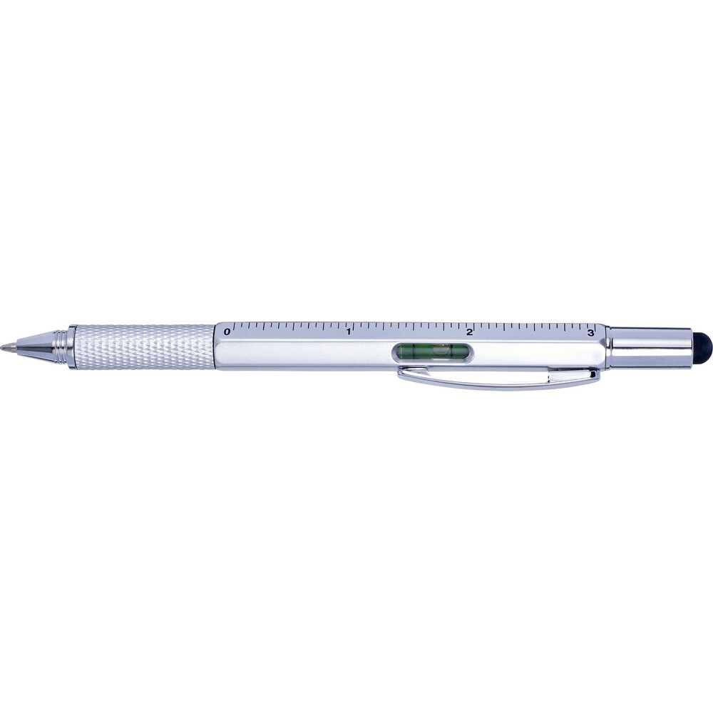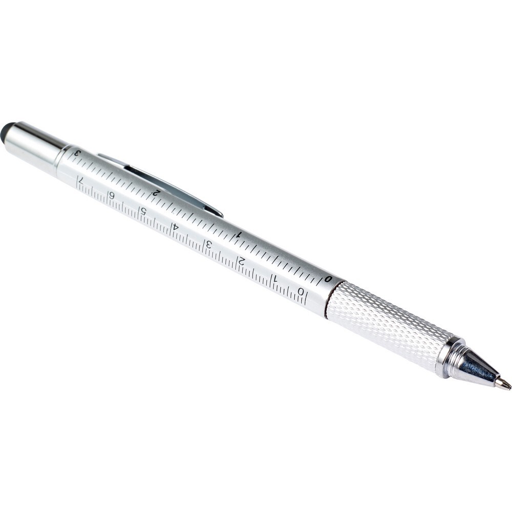 Długopis wielofunkcyjny, linijka, poziomica, touch pen / Srebrny