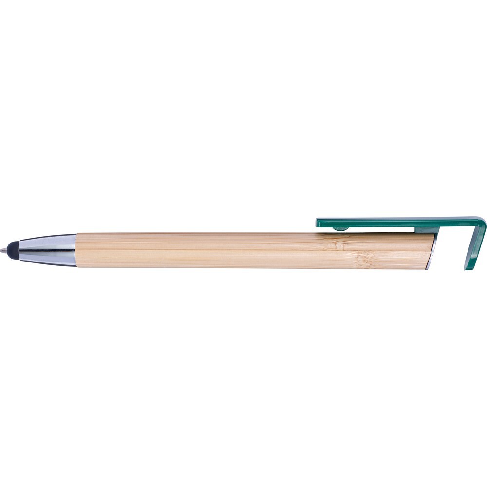 Bambusowy długopis, touch pen, stojak na telefon / Zielony