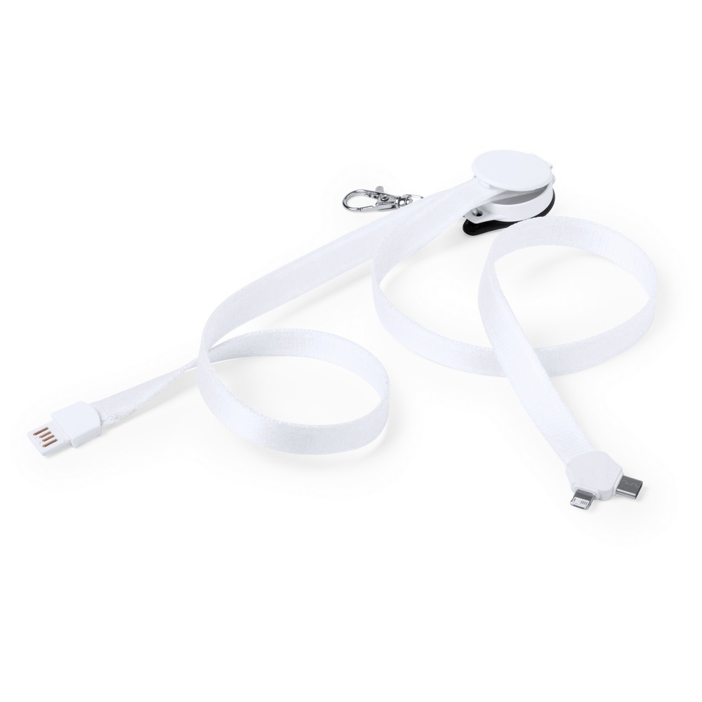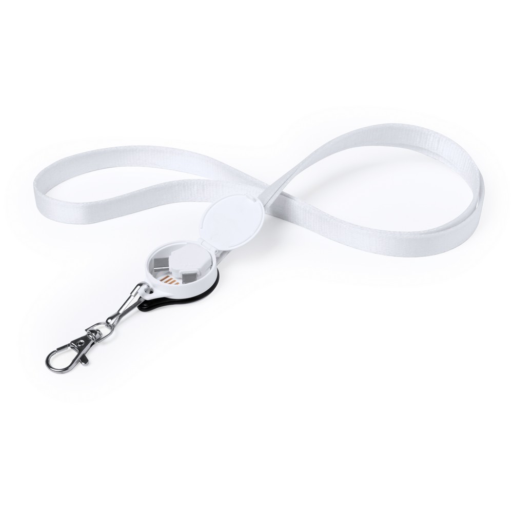 Jednak ta smycz reklamowa ma jeszcze jedną funkcję, posiada kabel do ładowania z trzema końcówkami 2 w 1 i USB typu C), kompatybilny z urządzeniami Android oraz iOS.