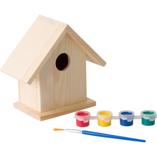 Domek dla ptaków do malowania, farbki i pędzelek / Drewno