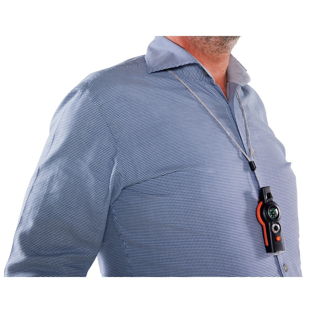 Wielofunkcyjne narzędzie przetrwania, funkcje: gwizdek, kompas, termometr (stopnie C i F), lampka, lusterko, szkło powiększające i sznurek z zabezpieczeniem
