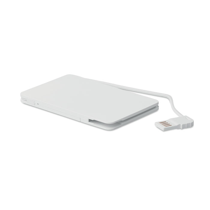 Ultra cienka bezprzewodowa ładowarka w kształcie karty kredytowej ze zintegrowanym kablem. Idealna do personalizacji w pełnym kolorze.