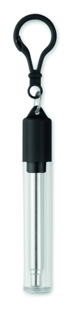 Słomka teleskopowa ze stali nierdzewnej ze szczotką do czyszczenia, w plastikowej tubie z karabińczykiem.