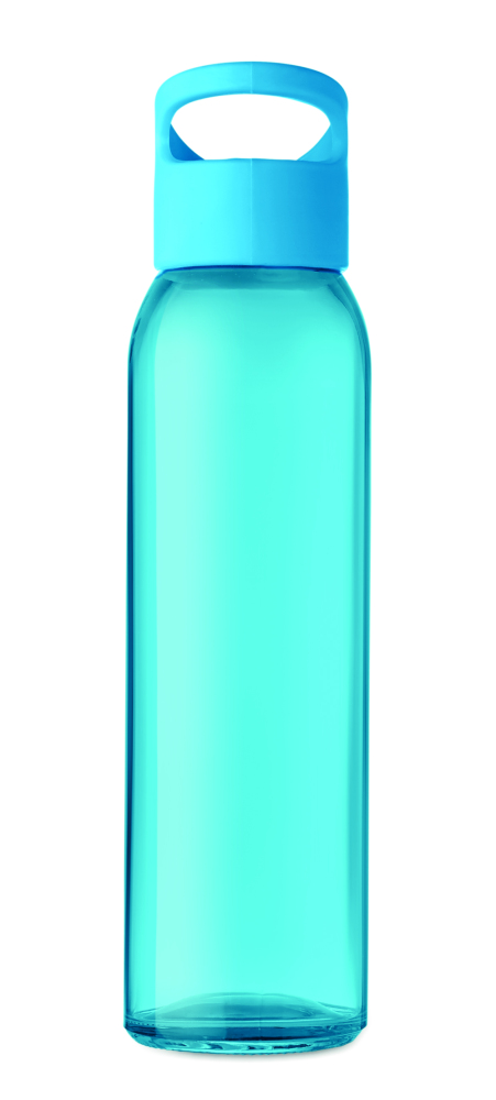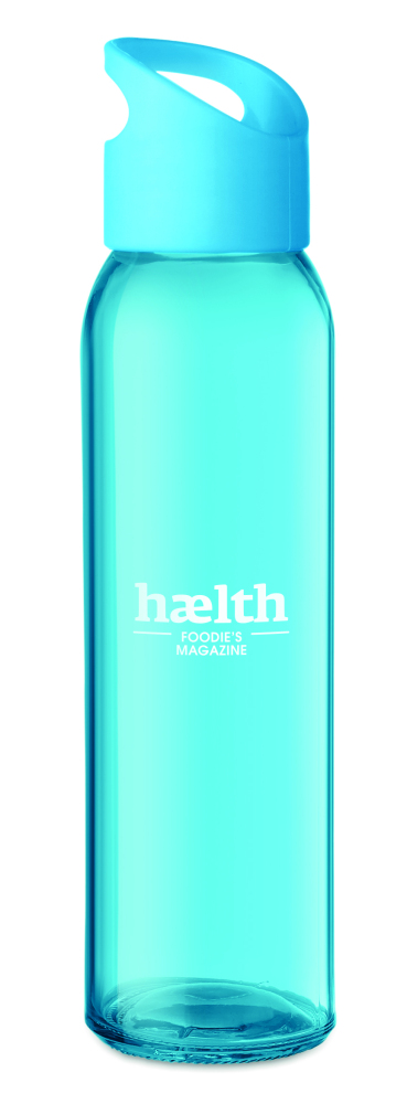 Szklana butelka z pokrywką PP z uchwytem do zawieszenia. Pojemność 470 ml.