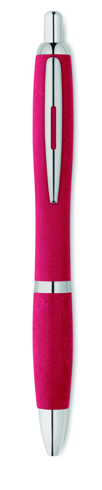 Długopis z przyciskiem 50% słomy pszennej 50% materiału ABS ze srebnym wykończeniem.Niebieski atrament.