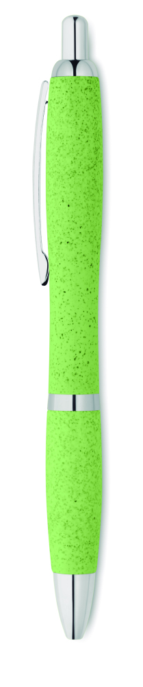 Długopis z przyciskiem 50% słomy pszennej 50% materiału ABS ze srebnym wykończeniem.Niebieski atrament.