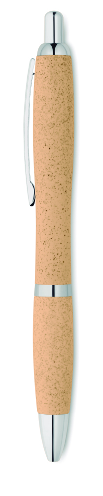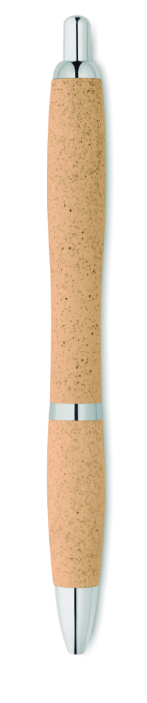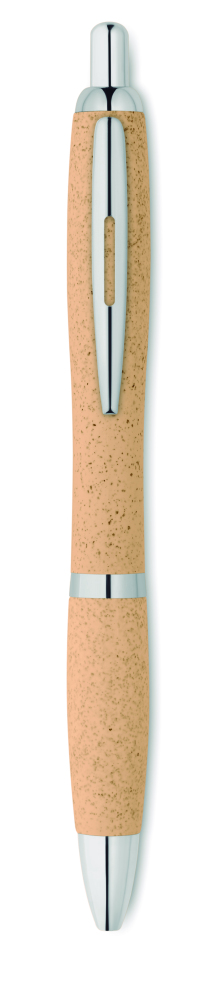 Długopis z przyciskiem 50% słomy pszennej 50% materiału ABS ze srebnym wykończeniem.Niebieski atrament.