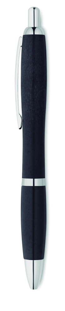 Długopis z przyciskiem 50% słomy pszennej 50% materiału ABS ze srebnym wykończeniem.Niebieski atrament.