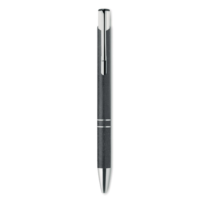 Długopis z przyciskiem 50% słomy pszennej 50% materiału ABS ze srebnym wykończeniem.Niebieski atrament.