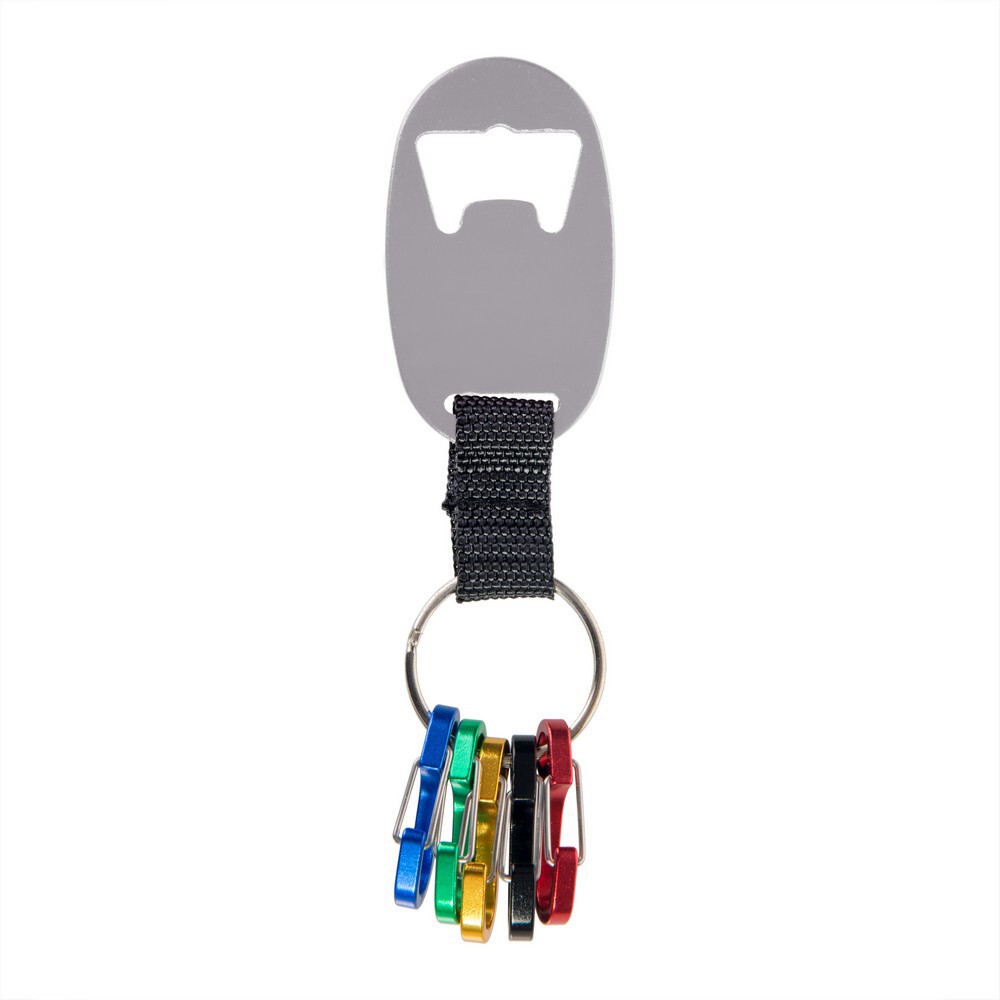 Brelok do kluczy, otwieracz do butelek, 5 małych karabińczyków (do użytku promocyjnego)